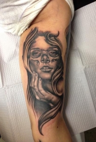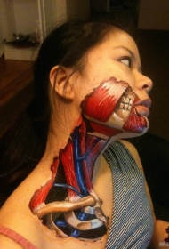 女子颈部和脸部令人毛骨悚然人体肌肉和骨骼纹身图案
