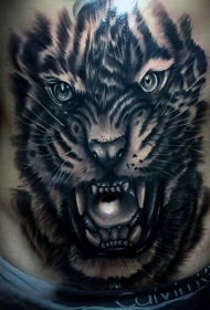 男子腹部现实主义风格的彩色老虎头像纹身图案