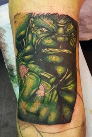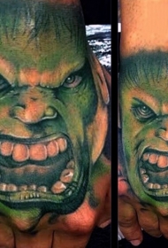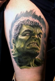 大腿彩色愤怒的绿巨人纹身图案