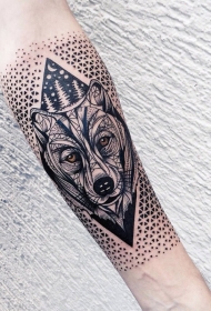 手臂不寻常的几何彩色狼头纹身图案