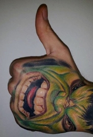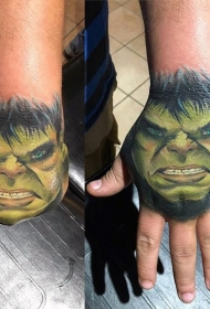 手背漫画书中愤怒的绿巨人纹身图案