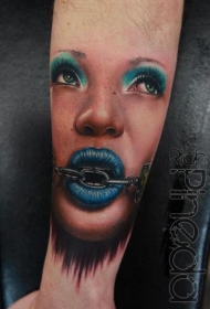 手臂肖像彩色女郎和链条纹身图案