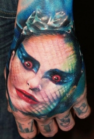 手背恐怖风格令人毛骨悚然的女人肖像纹身图案