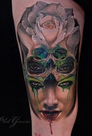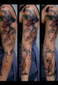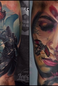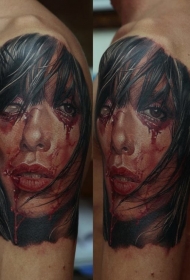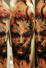 大臂现实主义风格彩色血腥恶魔女纹身图案
