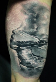 超现实主义风格的彩色女人脸组合风景纹身图案