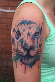 new school彩色女人脸与猫头鹰小腿纹身图案