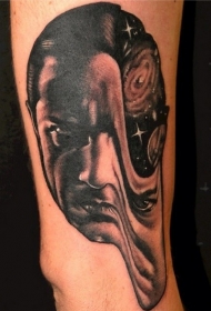 超现实主义风格的彩色人脸扭曲星空纹身图案
