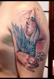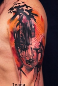 人脸肖像彩色肩纹身图案