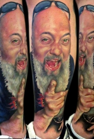 小腿笑脸男子肖像彩色纹身图案