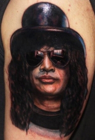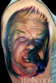 大臂歌手肖像彩色刺青图案