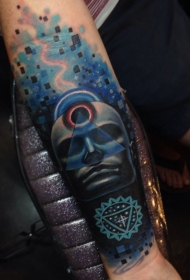 小臂超现实主义风格的彩色神秘男纹身图案