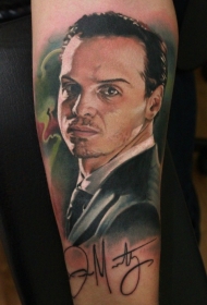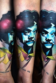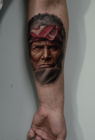 小臂现实主义风格的彩色印度人肖像纹身图案
