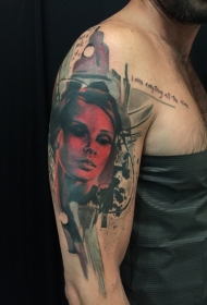 小臂现代传统风格彩色女子肖像钥匙孔纹身图案