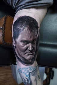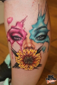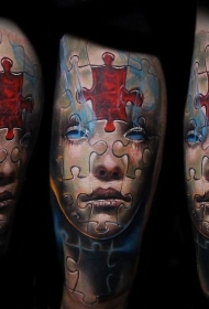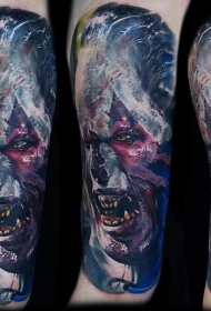 小腿彩色恐怖风格血腥的怪物脸纹身图案