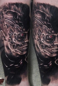 小腿终结者脸肖像彩绘纹身图案