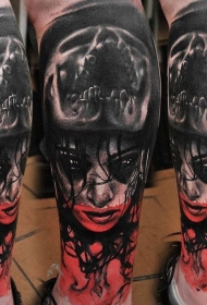 彩色恐怖风格变异男子肖像纹身图案