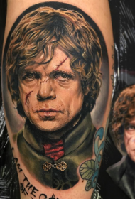 小腿写实游戏英雄肖像纹身图案
