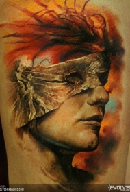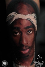 非常逼真的彩绘非洲男子肖像手臂纹身图案