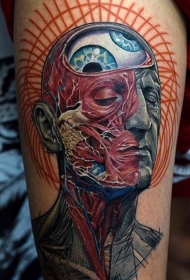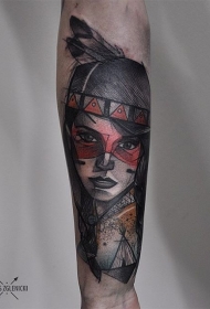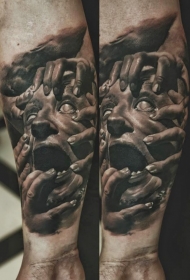 手臂幻想风格黑色女性损坏的脸纹身图案