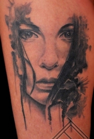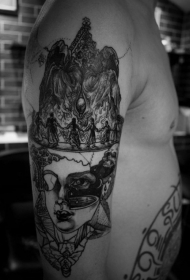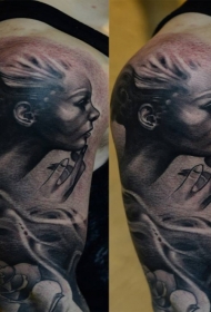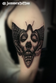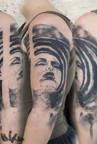 大臂令人毛骨悚然的黑色损坏女人脸纹身图案