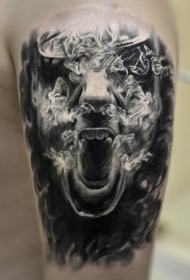 大臂令人毛骨悚然黑色男子怪物脸纹身图案