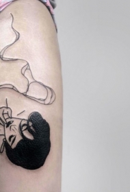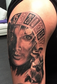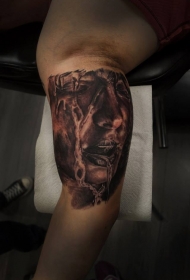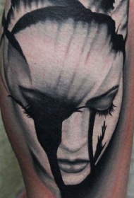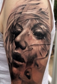 令人惊叹的大臂黑色女人脸与烟雾纹身图案
