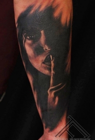 小臂现代传统风格黑色女性肖像蜡烛纹身图案