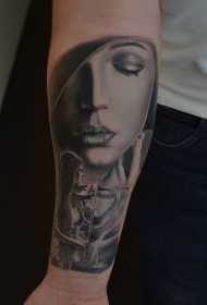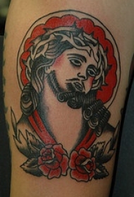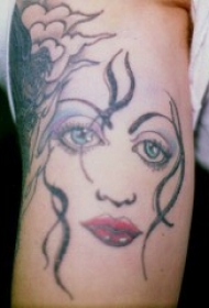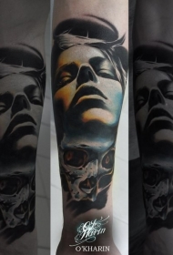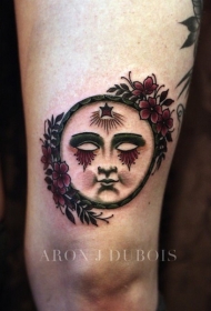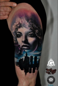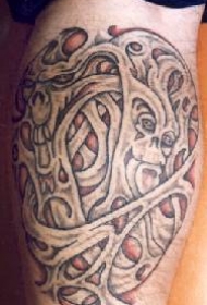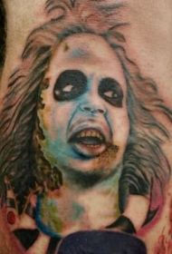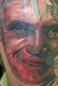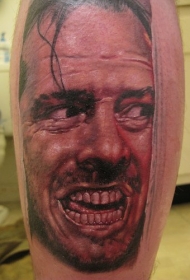 腿部彩色恐怖风格毛骨悚然的怪物脸纹身