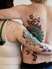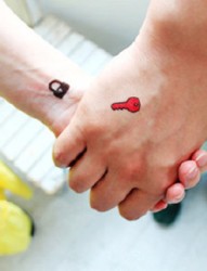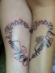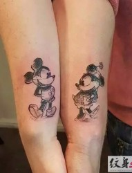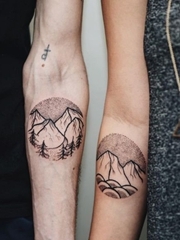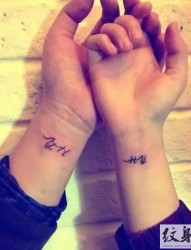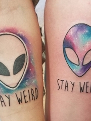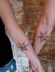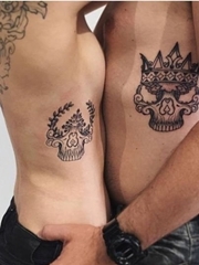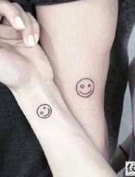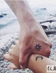 好闺蜜侧肋上相呼应的月亮和太阳纹身图案