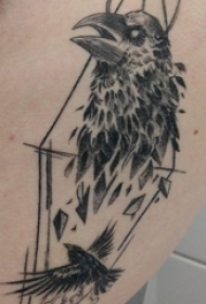 侧腰纹身男 男生侧腰上几何和乌鸦纹身图片
