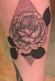 欧美小腿纹身 男生小腿上菱形和牡丹纹身图片