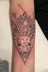 手臂纹身图片 男生手臂上菱形和麋鹿纹身图片