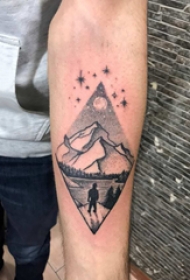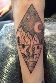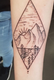 几何小清新纹身图案 男生手臂上菱形和风景纹身图片