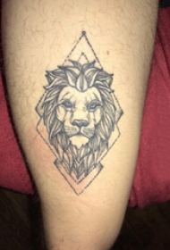 百乐动物纹身 男生大腿上菱形和狮子纹身图片