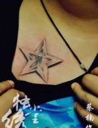 女人纹身图片:才可爱的美女后背六芒星纹身图片作品(精品)