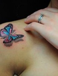 3D立体超写实的肩胛骨蝴蝶纹身图片作品