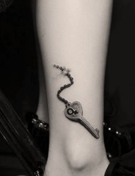 腿部潮流经典的六芒星与皇冠吊链纹身图片
