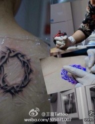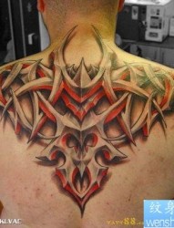 后背时尚经典的一幅骷髅六芒星纹身图片