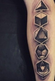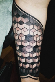 男生手臂上黑色点刺简单线条立体几何纹身图片