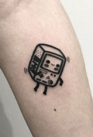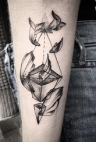 男生手臂上黑色立体几何元素简单线条盒子纹身图片