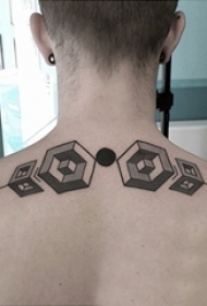男生背部黑灰素描几何元素创意立体纹身图片