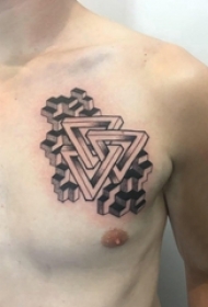 男生胸前黑灰立体创意纹身图片