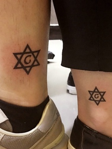情侣腿部个性时尚的六芒星纹身图片