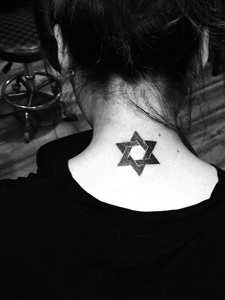 美丽动人的颈部六芒星纹身