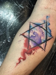 纹身六芒星图案 男生手臂上彩色的六芒星纹身图片