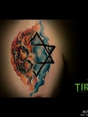 六芒星狮子泼墨彩绘纹身图案手稿