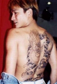 刘德华纹身 明星后背上黑灰色的龙纹身图片