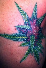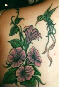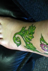 脚背粉红色的芙蓉花与青蛙纹身图案