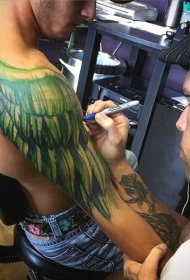 可爱逼真的绿色妆容眼睛手臂纹身图案