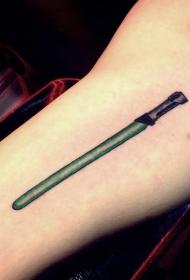 手臂非常逼真的绿色眼睛和字母纹身图案